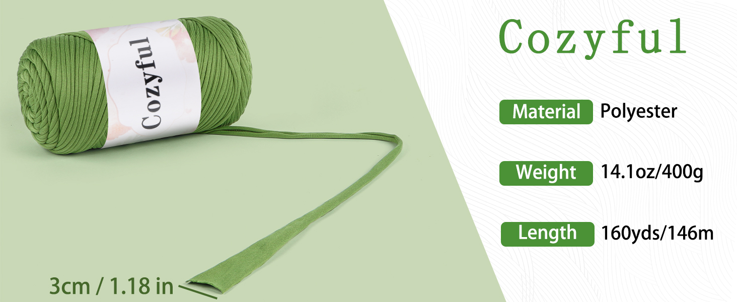 - Fabric Tshirt Yarn Size: Includes a roll of premium t shirt yarn, weighing 14.1oz/400g, measuring 160yds/146m in length, and approximately 3cm in width. T-shirt yarn is best paired with a 5-7mm crochet hook for optimal results.
